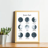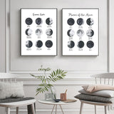 Les phases lunaires incarnent l'équilibre. Cette affiche montre les cycles de la lune. Elle sera une touche brillante parfaite et apportera de la magie dans votre pièce. Cadre non inclus.