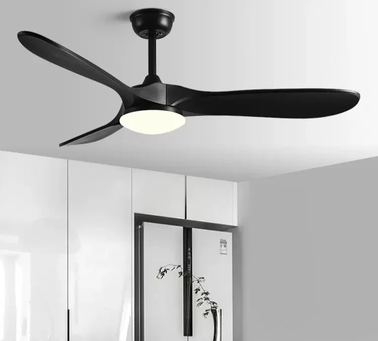 EXQUIO 108 cm, noir et bois noir avec ampoule dimmable, télécommande inclue